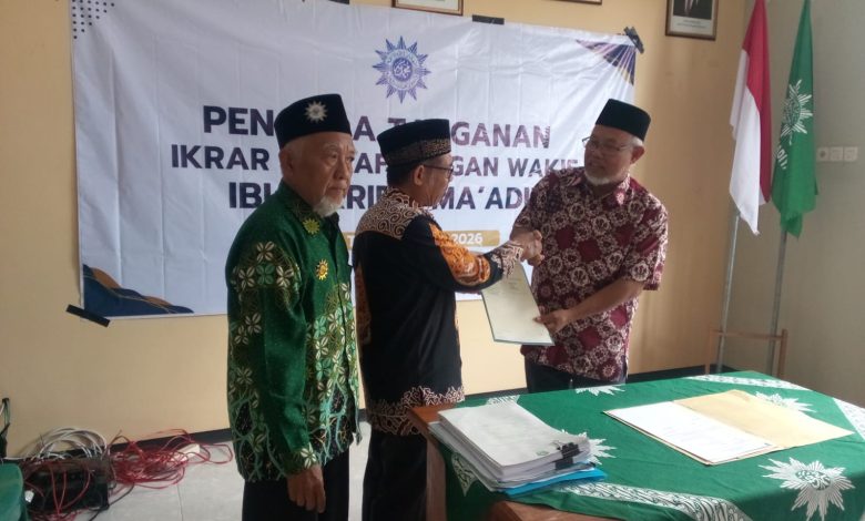 Seolah berkarya tanpa henti Majelis Wakaf dan Kehartabendaan Nganjuk untuk menambah aset persyarikatan. Ahad, 12 April 2026 setelah acara Kajian Ahad Pagi “Fajar Mubarrak” PDM Nganjuk di SMAM 1 Nganjuk, Ketua MWK PDM Nganjuk Suparno, S.H. M.H. menyerahkan 14 dokumen Sertifikat Wakaf tanah kepada Ketua PDM Nganjuk. Penyerahan itu ditandai dengan penandatangan Berita Acara Serah Terima oleh kedua belah pihak, yaitu Ketua MWK PDM Nganjuk kepada Ketua PDM Nganjuk Ustads Juwari, S.Pd. Berikut rincian 14 belas sertifikat tersebut: